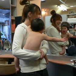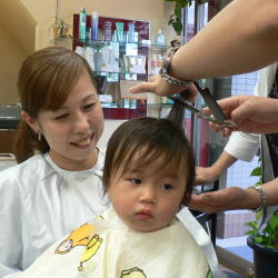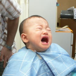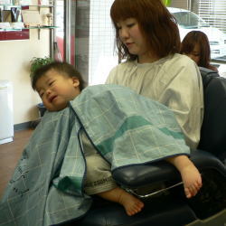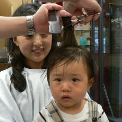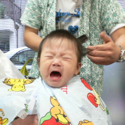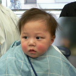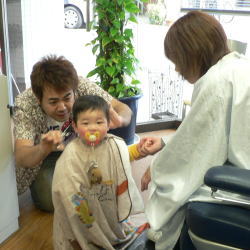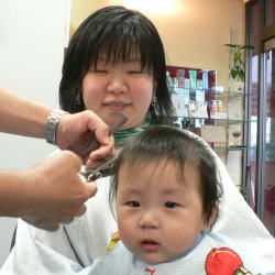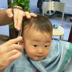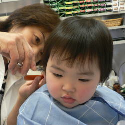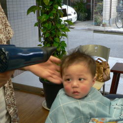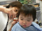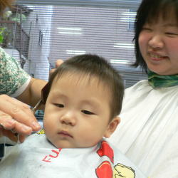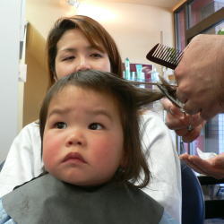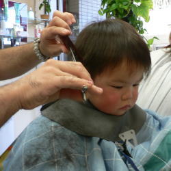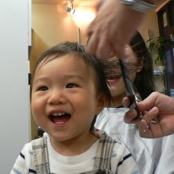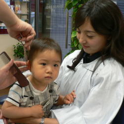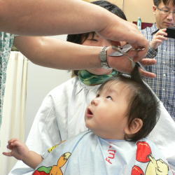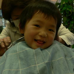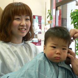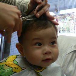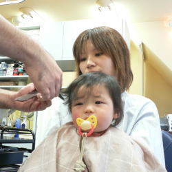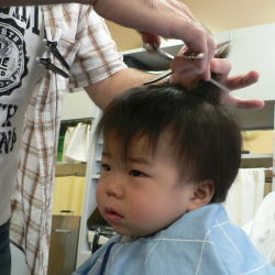 ゆうすけくんは、カット中のスタッフの顔がすご〜く気になるようです