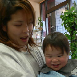 パチクリおめめがかわいい弟くんは、おりこうさんに待っていてくれましたよ。 |