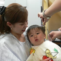 | 産まれてから、初めてのカット。産毛のような髪の毛は、お子様乳幼児の時のみ…。一生に残る誕生記念筆に心を込めて、我が子へ。 |