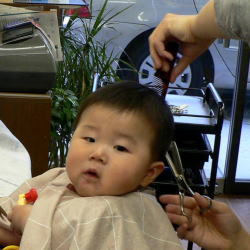 初めての散髪はやっぱりドキドキするもの。