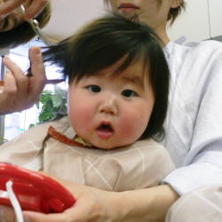 今日は雅華(みやか)ちゃんの初めての散髪の日です♪ |