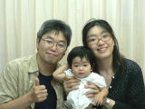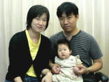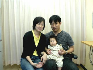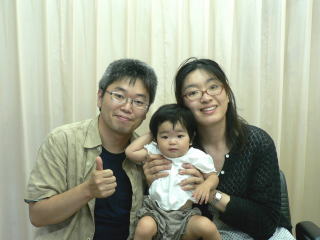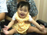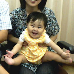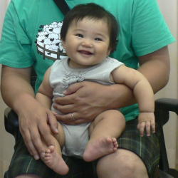 5ヶ月のあやちゃん。お父さんに抱っこされて、