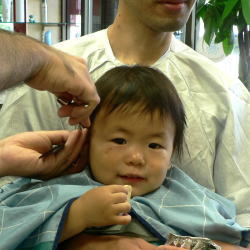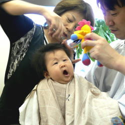 | 産まれてから、初めてのカット。産毛のような髪の毛は、お子様乳幼児の時のみ…。一生に残る誕生記念筆に心を込めて、我が子へ。 |