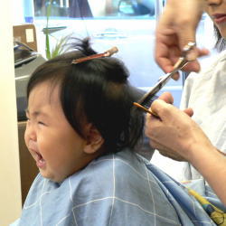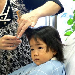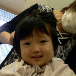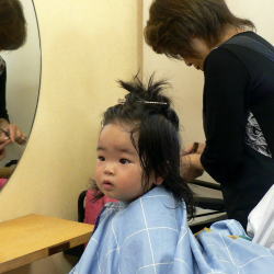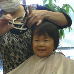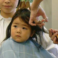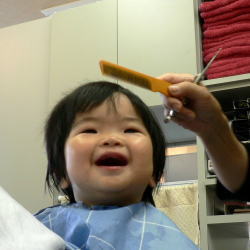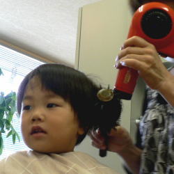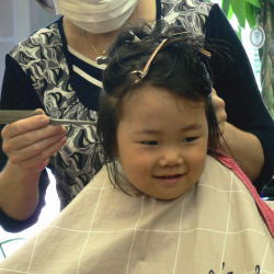 長くのばされた髪の毛をバッサリ短くカットしました。