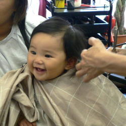 でこぼこフレンズを見ながらおりこうさんにカットできました♪