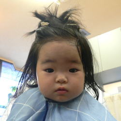 長くなった髪の毛をこ〜んな感じに短くカットしました!