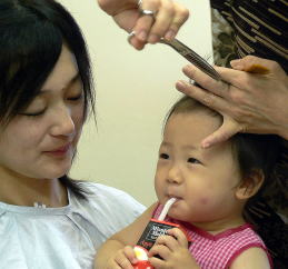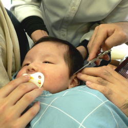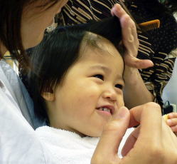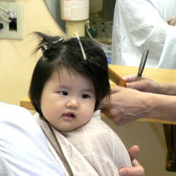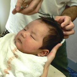 | 産まれてから、初めてのカット。産毛のような髪の毛は、お子様乳幼児の時のみ…。一生に残る誕生記念筆に心を込めて、我が子へ。 |