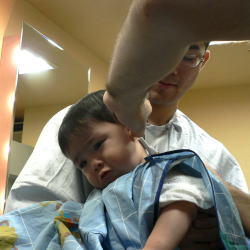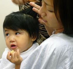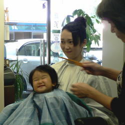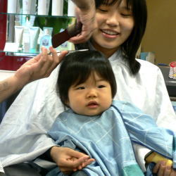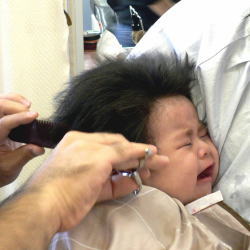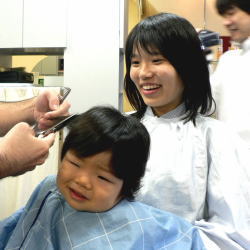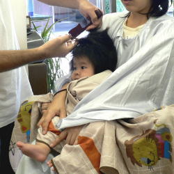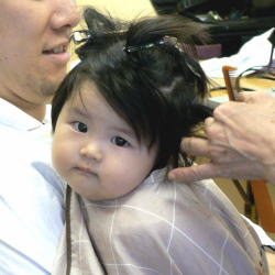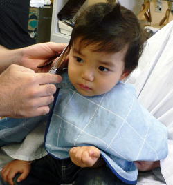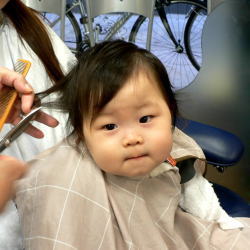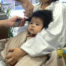 | 初めての散髪も泣かずに最後まで、できました! |
