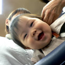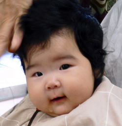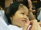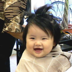 7ヵ月のまゆちゃん。最後まで泣かずに散髪できたね!