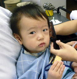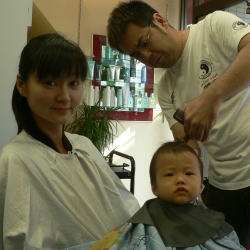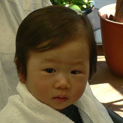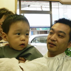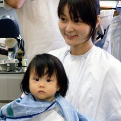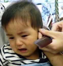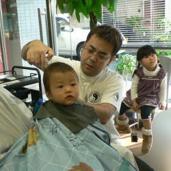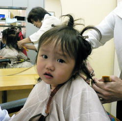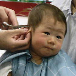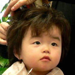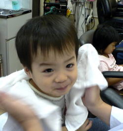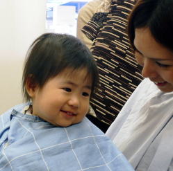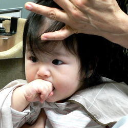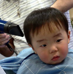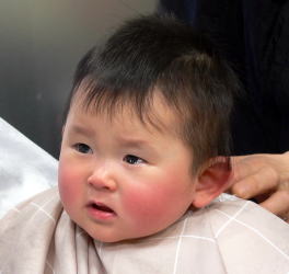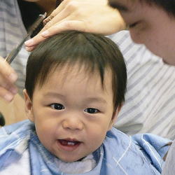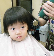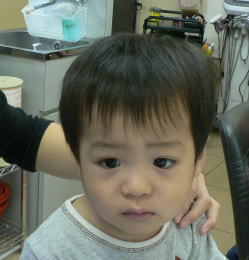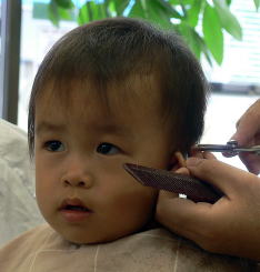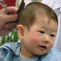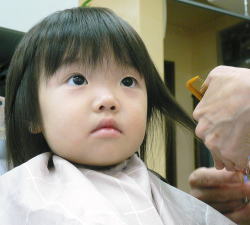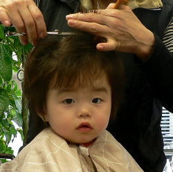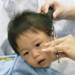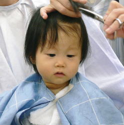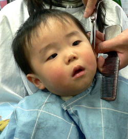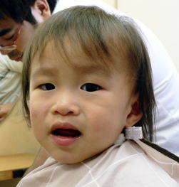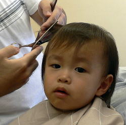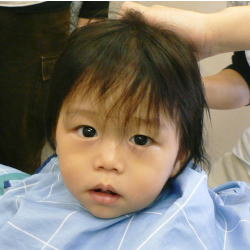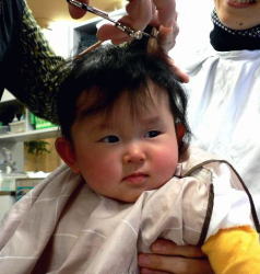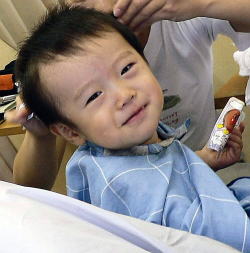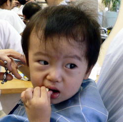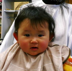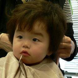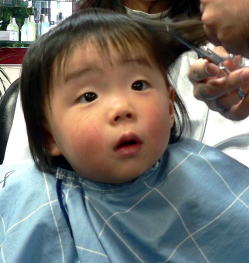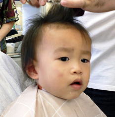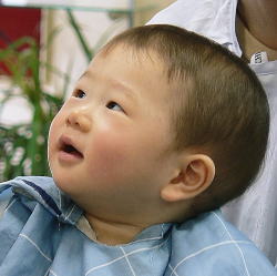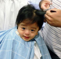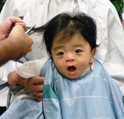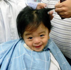 初めての散髪はドキドキです… |