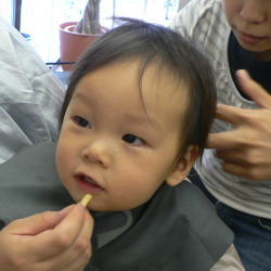 今日は宙叡(ひろえ)ちゃんのご希望もあって、短くカットしました☆ |