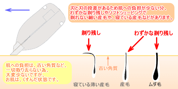 1、プロ用カミソリと違い、細い産毛やわずかな剃り残しがあります。