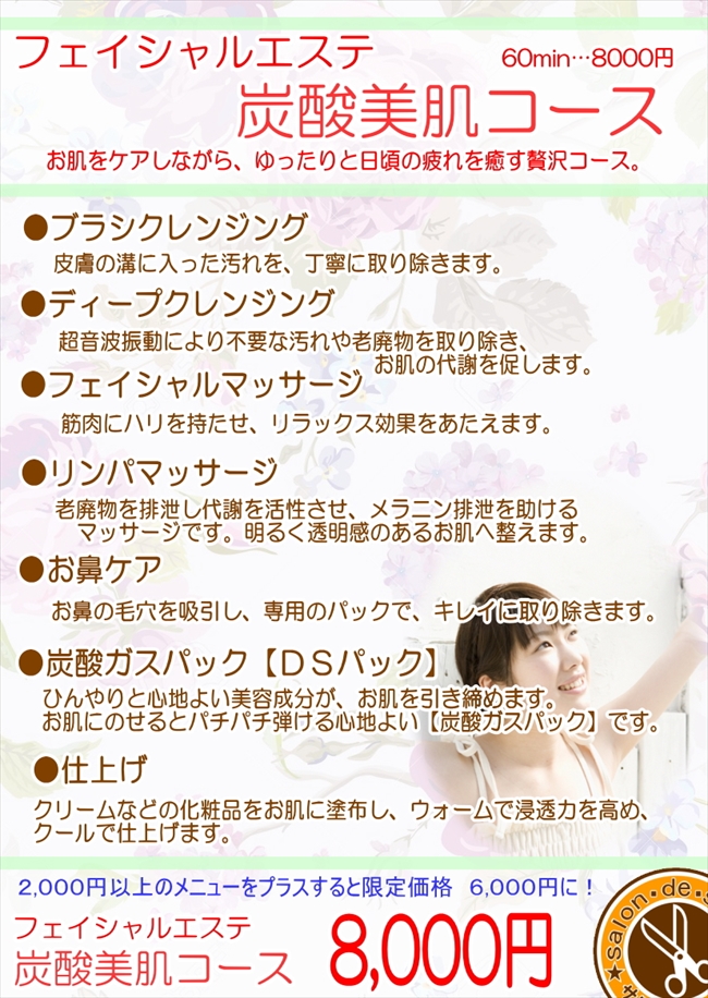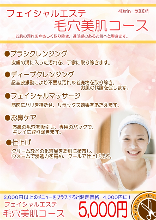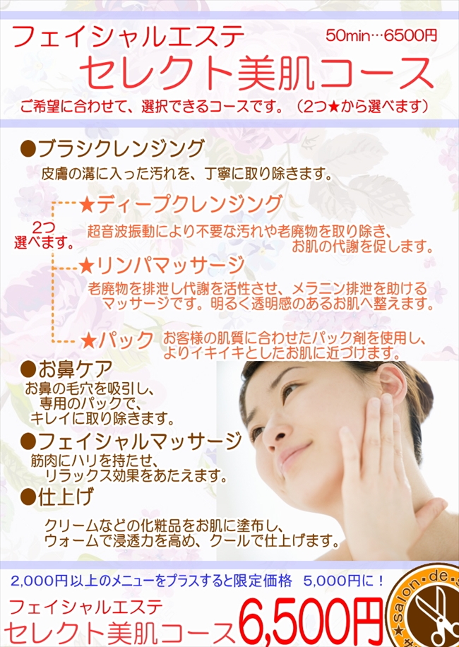 | エステマシーンやエステシモ化粧品を使用するフェイシャルエステ。疲れが表れるお顔にご褒美を。 |
