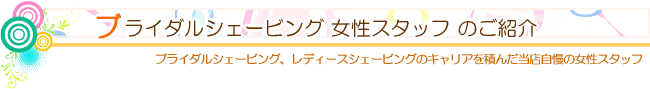| ブライダルシェービングは、女性スタッフの私達にお任せくださいませ。 |